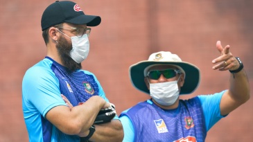 Daniel Vettori and Russell Domingo wearing face masks during a practice session © AFP