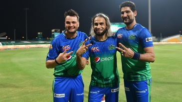 Usman Qadir, Imran Tahir and Sohail Tanvir soak in Multan Sultans' title win © PSL