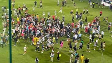 A pitch invasion marred the end of Derbyshire's victory at Edgbaston © ESPNcricinfo Ltd / George Dobell