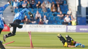 Benny Howell is run out for a duck as Gloucestershire slump against Sussex © Getty Images