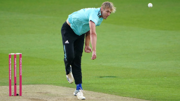 Kyle Jamieson runs in to bowl on his Surrey debut © Getty Images