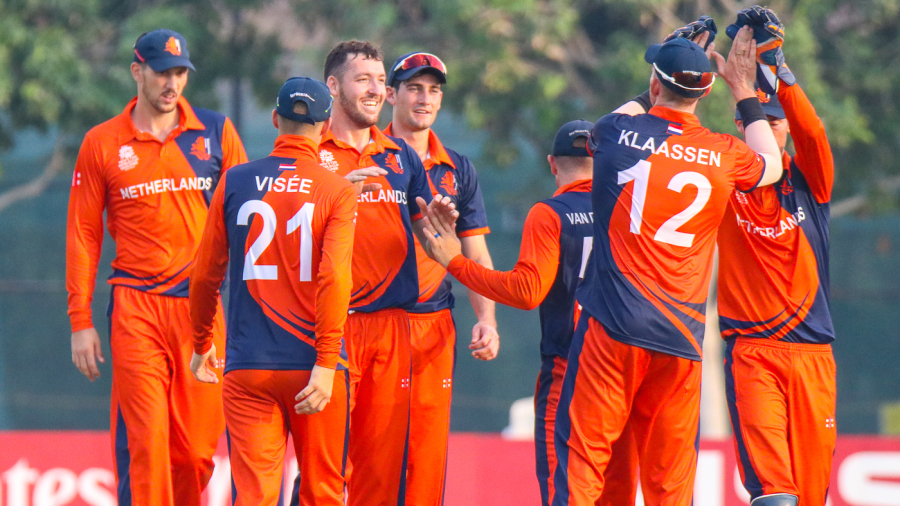 दल: पीटर सीलार (कप्तान), कॉलिन एकरमैन (उप-कप्तान), फ़िलिपे बोइसेवे, बास डी लीडी, पॉल वैन मीकेरन, बेन कूपर, मैक्स ओ डॉड, स्कॉट एडवर्ड्स, रायन टेन डेशकाटे, टिम वैन डेन गर्टेन, रूलौफ वान डर मर्व, ब्रैंडन ग्लोवर, फ़्रेड क्लासेन, लोगन वान बीक, स्टीफ़न मायबर्ग