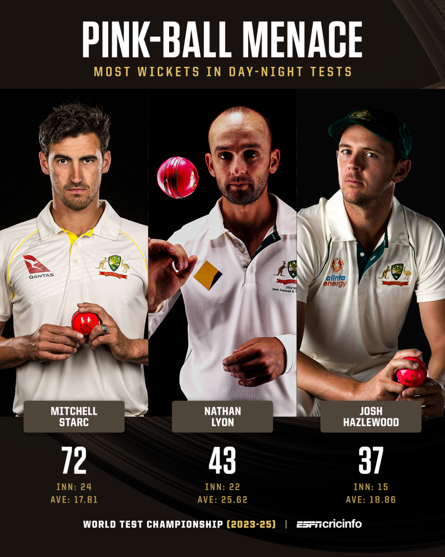 4 डे नाईट टेस्ट मैचों में स्टार्क का यह चौथा पंजा है। किसी अन्य गेंदबाज़ ने दो बार से ज़्यादा यह कारनामा नहीं किया है। स्टार्क ने अब तक 13 डे नाईट टेस्ट मैच खेले हैं जो कि संयुक्त तौर पर किसी एक खिलाड़ी द्वारा खेले गए सर्वाधिक मैच हैं।