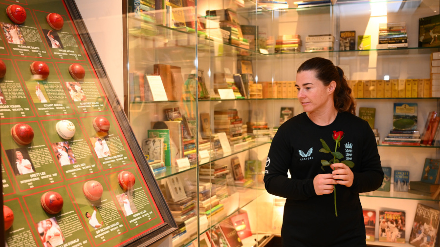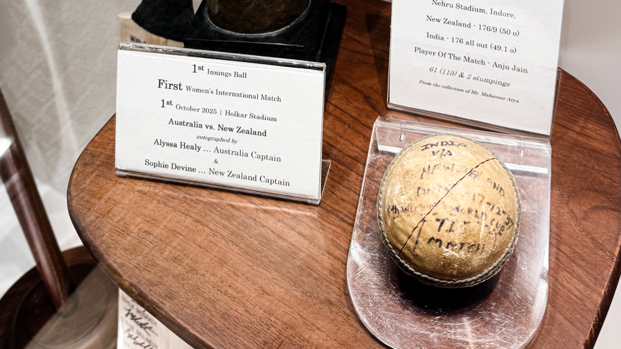 होल्कर स्टेडियम में 2025 में खेले गए पहले महिला मैच और 1997 में नेहरू स्टेडियम में टाई हुए विश्व कप मैच की गेंदें भी म्यूज़ियम में रखी गई हैं S Sudarshanan / © ESPNcricinfo Ltd
