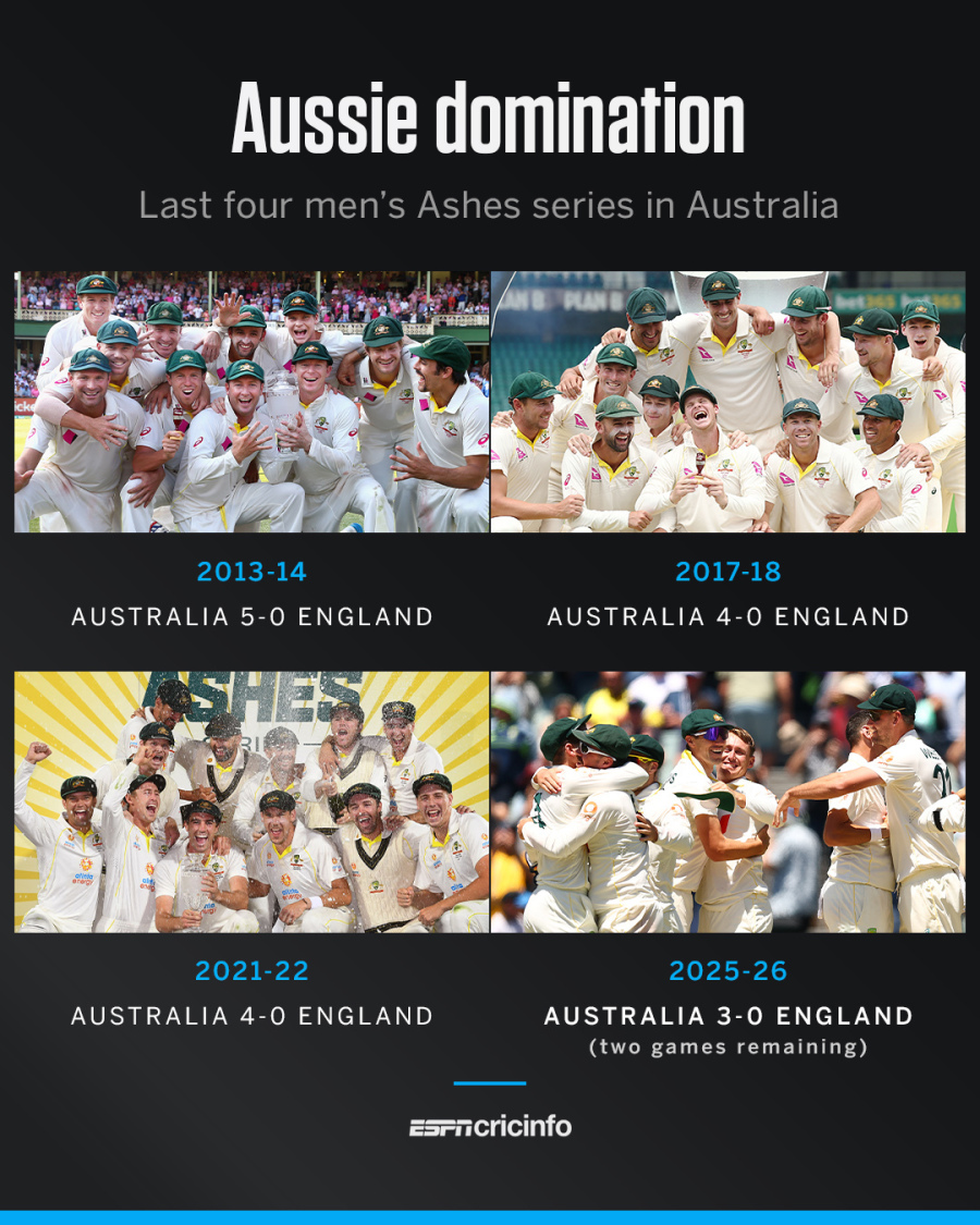 आंकड़े : ऑस्ट्रेलिया की एक और घरेलू ऐशेज़ जीत, इंग्लैंड का ख़राब प्रदर्शन जारी