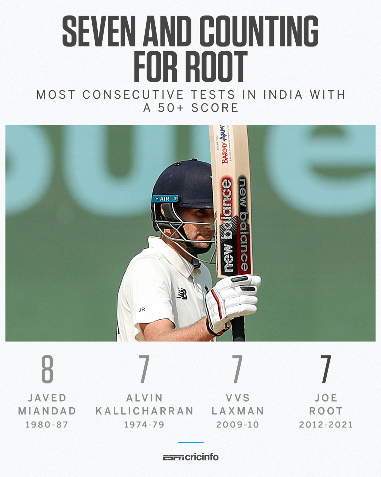 Most consecutive Tests 50s in India