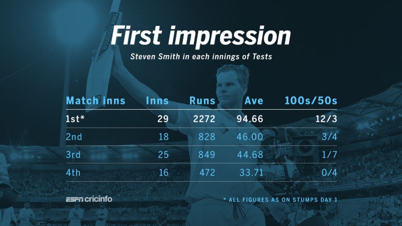 Steven Smith's numbers in each innings of a Test
