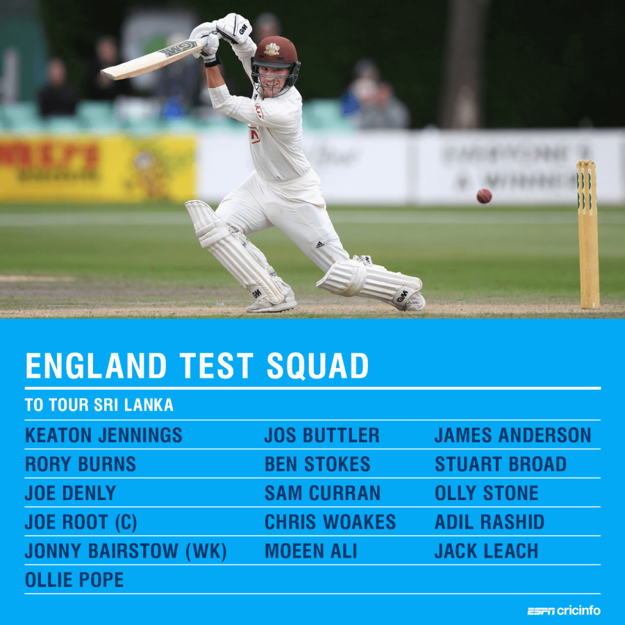 Rory Burns will be given the chance to succeed Alastair Cook at the top of England's Test batting order, after being named alongside two other uncapped players, Olly Stone and Joe Denly