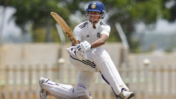 After a low score in the first innings, Jaiswal started the second cautiously. There weren't any flashy shots or attempts to clear the ropes early. But once he got the hang of the surface, Jaiswal attacked. There was a reverse sweep over point against Harsh Dubey before Jaiswal charged down and smashed the left-arm spinner straight over the sight screen. He scored 64 off 70 balls on the final day, with his innings including three fours and three sixes.