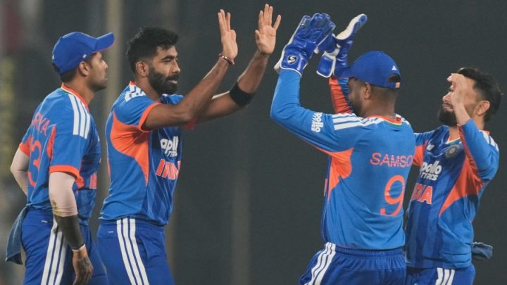 When Harshit Rana and Hardik Pandya tried to swing the new ball in the early exchanges, they ended up bowling on the fuller side of a good length, and were driven or chipped away over the infield for fours. Bumrah sussed out the conditions so quickly that his first ball was on the money. New Zealand never recovered from 36 for 3 in the powerplay, and India pressed on to seal the series 3-0, with two games to go.