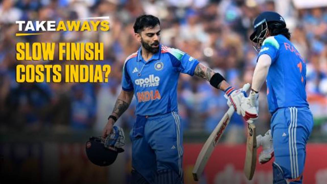 When Markram was caught at long-on, Breetzke had reached a run-a-ball 23 and the required run-rate was just above eight an over. He didn't go for broke immediately. The next two overs brought only four runs and when the third seemed to be going the same way, Brevis made room for himself to hit Kuldeep for a straight six. That over went for 10 but the one after it, just three. Breetzke only got a boundary in the following over thanks to a combination of dew and a Kuldeep misfield at short third, but he let Brevis do the big-hitting, as anyone would.