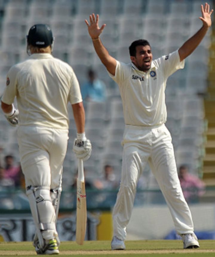 As steadily and well as Ojha bowled, it was Zaheer's spell after tea that was the difference between an average day and a good one for India. "Right now, if Ishant was there, it would have been great," said Ojha, when asked about the lack of a second pace bowler once the ball started to reverse. "We don't want to look at the negatives. The other three bowlers have done brilliantly, and we also expect Ishant to come back. Zak was amazing. He did the job."