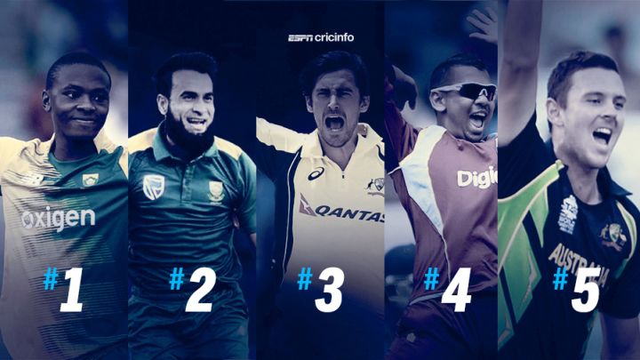 Rabada climbed four spots following the three-match ODI series against England, in which he was the leading wicket-taker with seven wickets at 21.71 - including 4 for 39 in the third game, which helped reduce England to 20 for 6 - and an economy rate of 5.42. Overall in 36 ODI innings since his debut in July 2015, he has 64 wickets at 24.90 and an economy rate of 5.13.