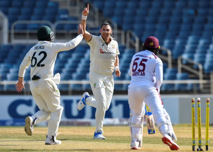 Greaves had been the only West Indies batter to reach double figures before he edged an excellent delivery to second slip. Boland angled into off, forcing Greaves to defend, it nipped and bounced to catch the edge. Boland then went around the wicket to Shamar and nipped one back into his back pad. Umpire Adrian Holdstock kept his finger down but Australia reviewed promptly. Ball-tracking showed unequivocally that it was smashing the top of middle well under bail height, forcing the decision to be overturned.