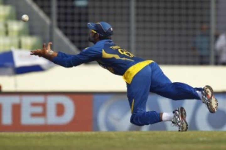 Judging that an airy Anamul Haque flick off Ashan Priyanjan was too far above his head for the simple overhead grab, Lahiru Thirimanne jumped as high as he could and punched the ball with his palms like a goalkeeper tipping a fierce shot over the crossbar. Thirimanne wasn't a goalkeeper, and his work wasn't done yet. Having tumbled to the ground, he corkscrewed himself to face the ball once more and completed a diving catch inches from the turf.