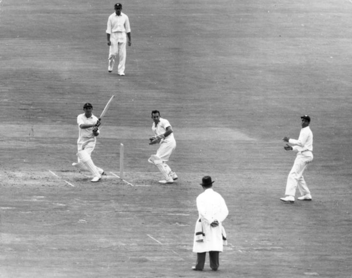 That winter he spent hours in Gloucestershire's indoor nets learning to play more comfortably off the back foot. It did the trick: in 1949 he scored nearly 1,800 runs. "His elegant strokeplay stamped him as one of the best young batsmen in the country," said Wisden. A first England call-up came against South Africa at Old Trafford in 1951. He was afflicted by nerves and his technique was tested on a damp pitch; but though he made only 15, he created a good impression. "Full of cultured promise," said John Arlott on the radio. Graveney scored more than 2,000 runs at 48 that summer to earn a place in an understrength England team to tour the subcontinent. In the Second Test at Bombay he compiled 175 in eight hours, one of six centuries on a productive trip.